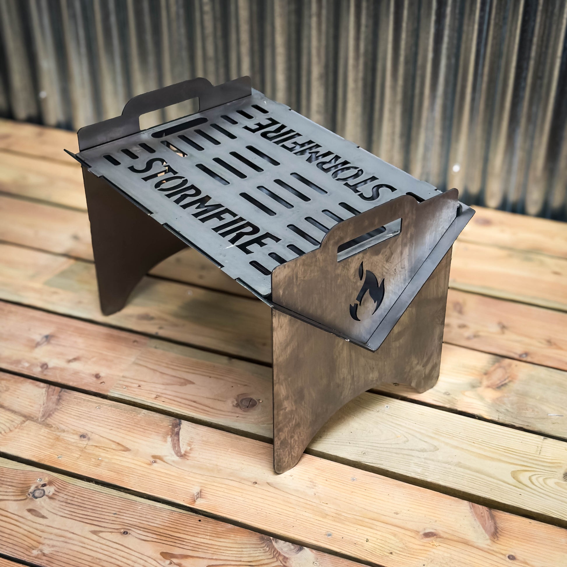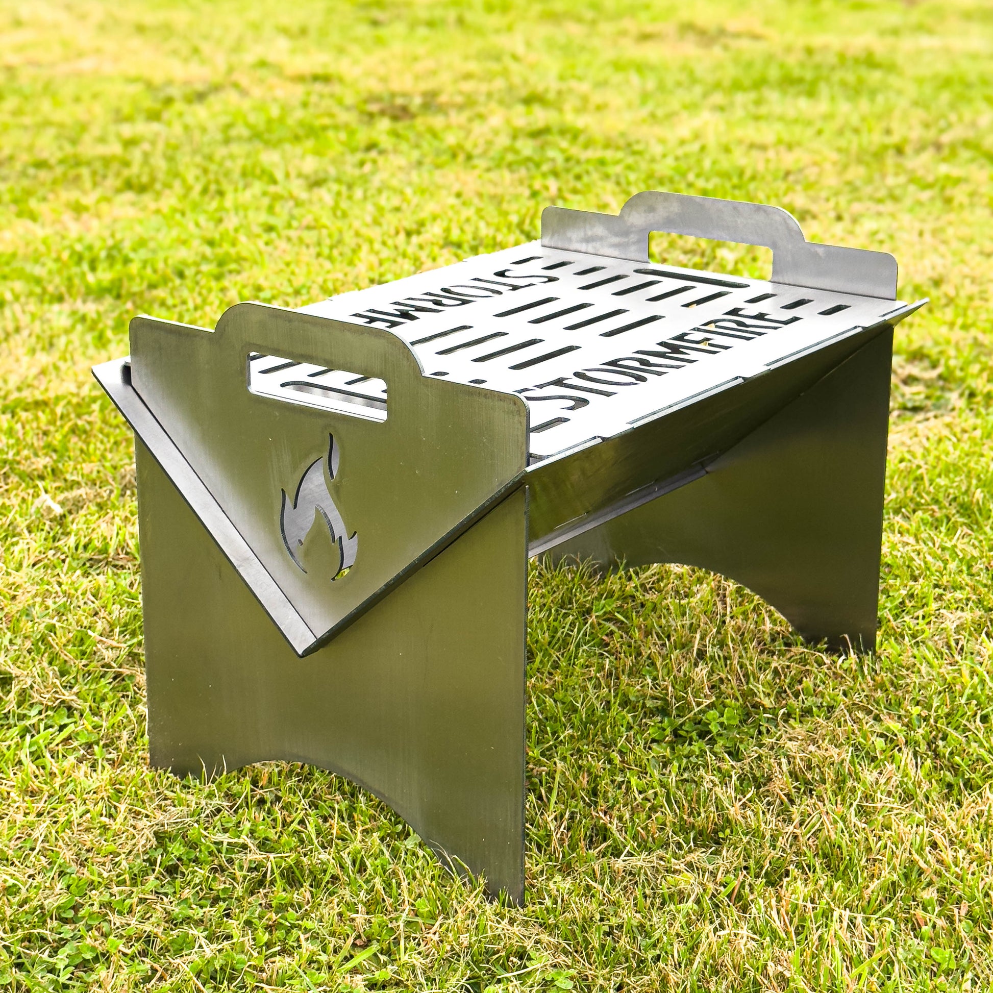 Storm Fire Portable Flat-Pack Fire Pit & Grill: Handmade Steel Camping Cookout