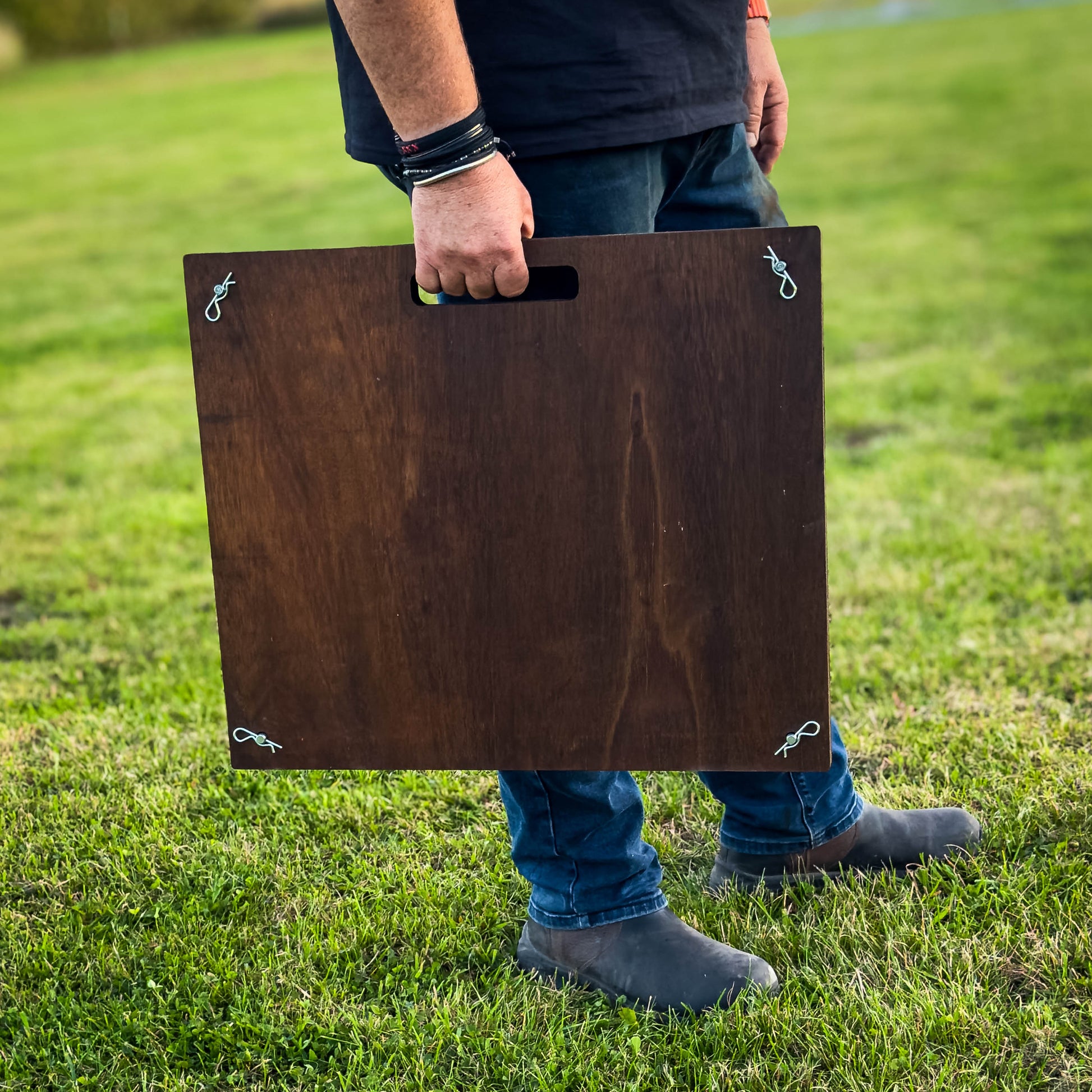 Portable & Easy to Pack – folds neatly into its own CNC-cut plywood carry case, stained in dark oak and treated with oil for long-lasting protection.